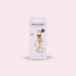 Te invitamos a darle un toque tierno a tu outfit con este lindo llavero. Posee un gancho metálico y pequeños adornos dentro de un círculo...